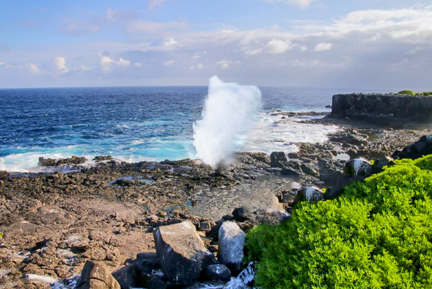 Famous for the waved albatross, Gardner Bay's white sandy beaches, and the dramatic blowhole – a sea water fountain blasting through a hole in an old lava tube - at Punta Suarez.